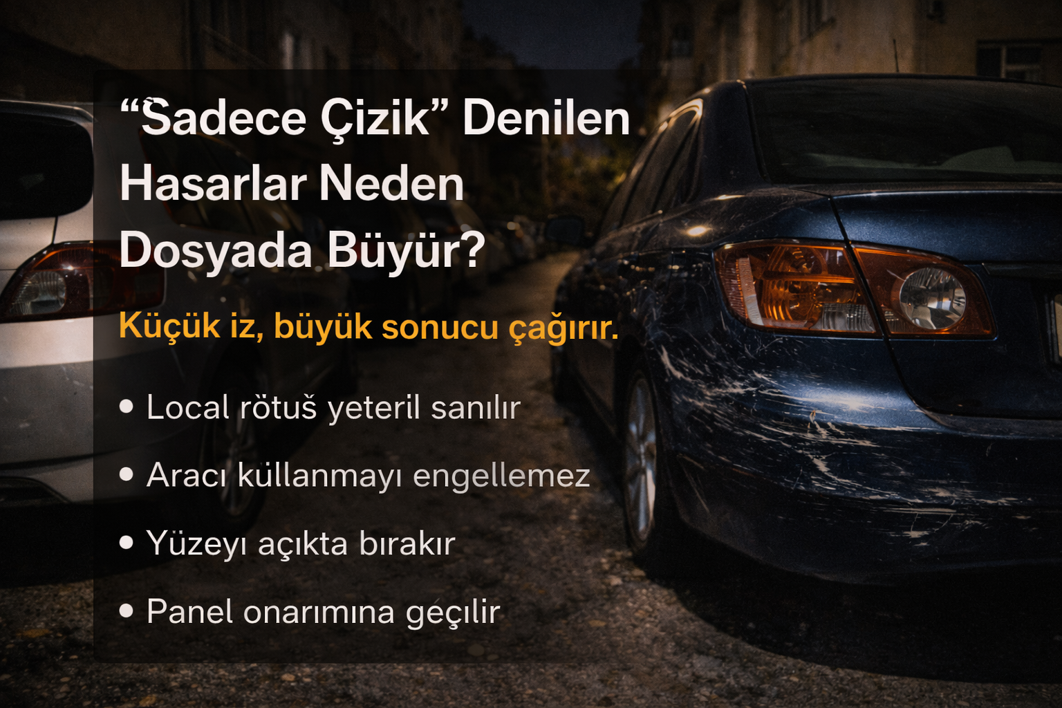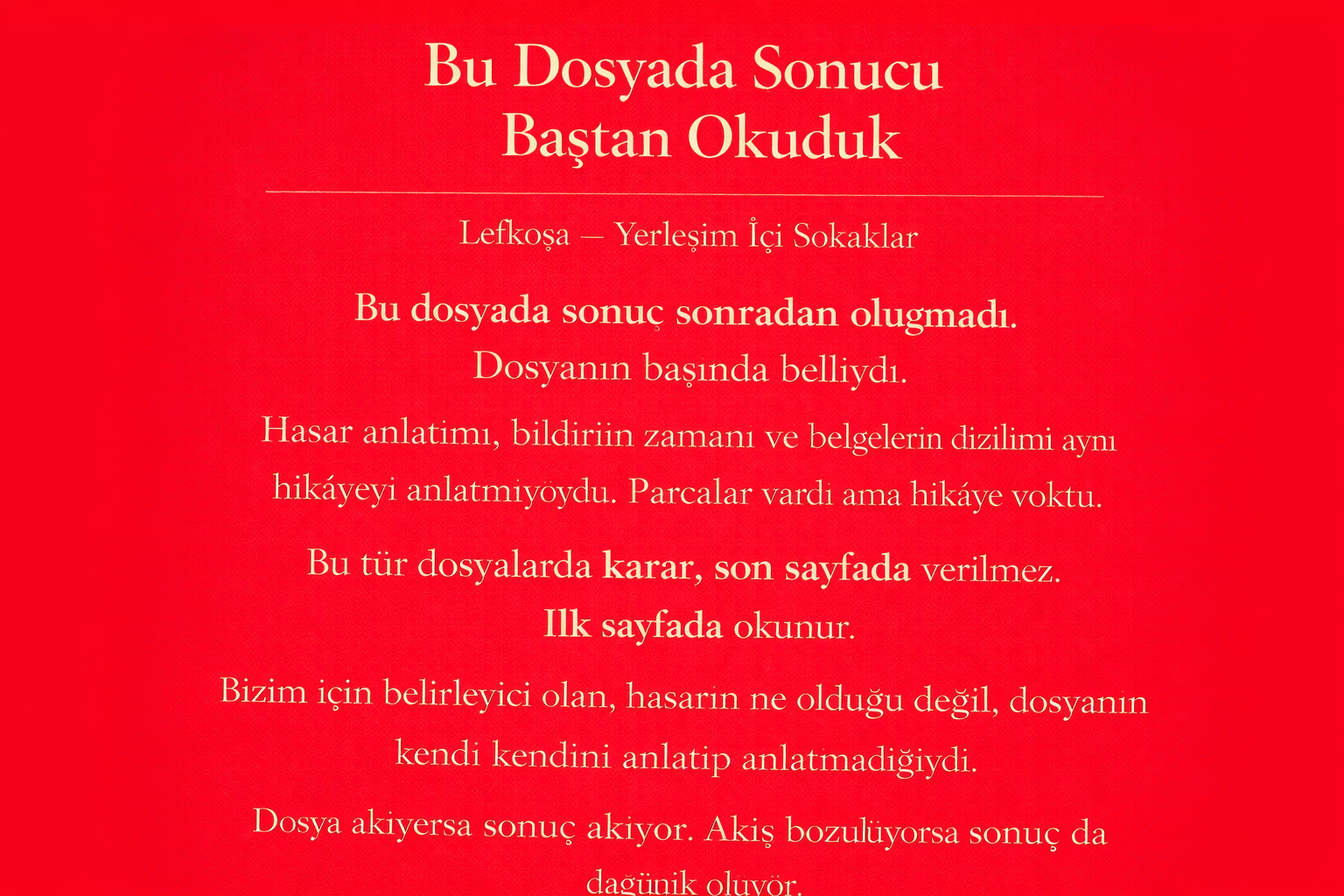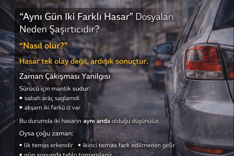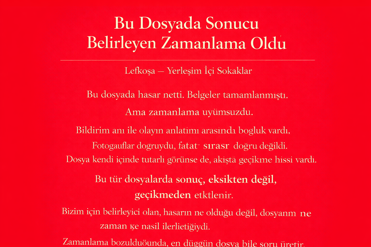 Acele Refleksi: Son 10 Metrede Yapılan Hatalar 📍 Lefkoşa – Kumsal Bölgesi Birçok hasar, uzun bir yolculuğun ortasında değil, son 10 metrede meydana gelir. Lefkoşa Kumsal bölgesinde tekrar eden hasar kayıtları incelendiğinde, bu ortak an net biçimde ortaya çıkar. Varışa çok yaklaşıldığında, dikkat azalır ve acele refleksi devreye girer. Son 10 metre, sürücünün zihinsel olarak “iş bitti” dediği noktadır. Ev görünür, park yeri tahmin edilir, manevra zihinde tamamlanır. Ancak araç henüz durmamıştır. Tam da bu zihinsel kopuş anı, hataya alan açar. Bu refleksle yapılan manevralar genellikle hızlı değil, kontrolsüzdür. Direksiyon daha sert kırılır, mesafe daha az kontrol edilir, aynalara bakış kısalır. Özellikle dar sokaklarda bu refleks, tampon köşesi, çamurluk veya yan aynayla sonuçlanır. Kumsal sokaklarında son 10 metrede oluşan hasarların çoğu düşük hızda gerçekleşir. Bu da sürücüde “önemsizdi” algısı yaratır. Ancak hasarın önemsizliği, nedenin sistematik olduğu gerçeğini değiştirmez. Acele refleksi her gün tekrar eder. Bu davranışın bir diğer özelliği de alışkanlıkla birleşmesidir. Aynı eve her gün gelen sürücü, aynı son 10 metreyi defalarca sorunsuz geçmiştir. Bu geçmiş deneyim, riski olduğundan küçük gösterir. Oysa her tekrar, yeni bir değişkenle karşılaşma ihtimali taşır. Lefkoşa Kumsal’da birçok küçük hasarın ortak nedeni, yolun değil zihnin bitmesidir. Araç hâlâ hareket halindeyken, dikkat park yerine geçmiştir. Sokak ise bu dikkatsizliği tolere etmez. Yol biter sanılır. Dikkat düşer. Hasar ortaya çıkar.