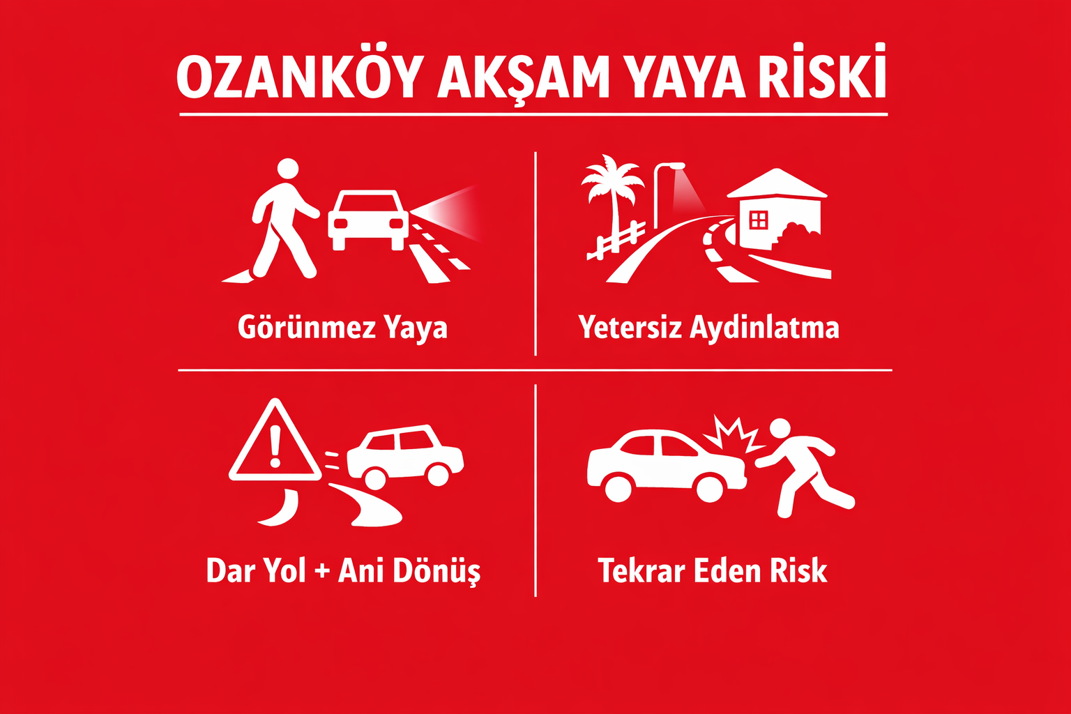 Gayretköy Köprü Geçişinde Akşam Rüzgâr Sapması Yer: Gayretköy – köy girişindeki küçük köprü geçişi ve açık tarla hattı. Gayretköy’e yaklaşırken ana yol kısa bir köprü üzerinden geçer. Köprü sonrası hat tekrar açık araziye bağlanır. Bu geçiş sade görünür. Ancak akşam saatlerinde rüzgâr yönü belirleyici olur. Risk köprüden değil, açık alandaki ani yan rüzgârdan doğar. Neden Burada? Köprü kesiti çevreye göre daha açıktır. Yan korkuluk dışında rüzgârı kesen doğal engel yoktur. Gün batımına doğru açık tarla hattında yan rüzgâr hızlanır. Araç köprüye girerken rüzgârı daha az hisseder, çıkışta ise ani bir itme etkisi oluşur. Bu geçiş birkaç saniyeliktir. Ancak şerit pozisyonu etkilenir. Zaman Katmanı Risk özellikle 18.00–19.00 arasında belirginleşir. • Gün batımı • Köy dönüşü • Tarla hattında rüzgâr artışı Akşam serinliğiyle birlikte rüzgâr yön değiştirir. Açık alanda yan basınç artar. Yerel Davranış Sürücüler köprüyü riskli bir nokta olarak görmez. Yol düz olduğu için hız sabit tutulur. Köprü çıkışında direksiyon düzeltmesi gecikirse araç merkez çizgisine yaklaşabilir. Karşı yönden gelen araç da aynı rüzgâr etkisine maruz kalır. Somut Senaryo Saat 18.25. Köprüden geçen bir araç çıkışta ani yan rüzgâr hisseder. Direksiyon hafif sola kayar. Aynı anda karşı yönden gelen araç da benzer bir düzeltme yapmaktadır. İki araç kısa süreli olarak merkez çizgisine yaklaşır. Temas oluşmayabilir. Ancak risk, rüzgârın köprü çıkışında ani hissedilmesinden kaynaklanır. Gayretköy köprü geçişinde akşam tehlike yol daralmasından değil, açık alan rüzgârının geçiş anında oluşturduğu sapmadan doğar. Yol değişmez, hava akımı değişir.